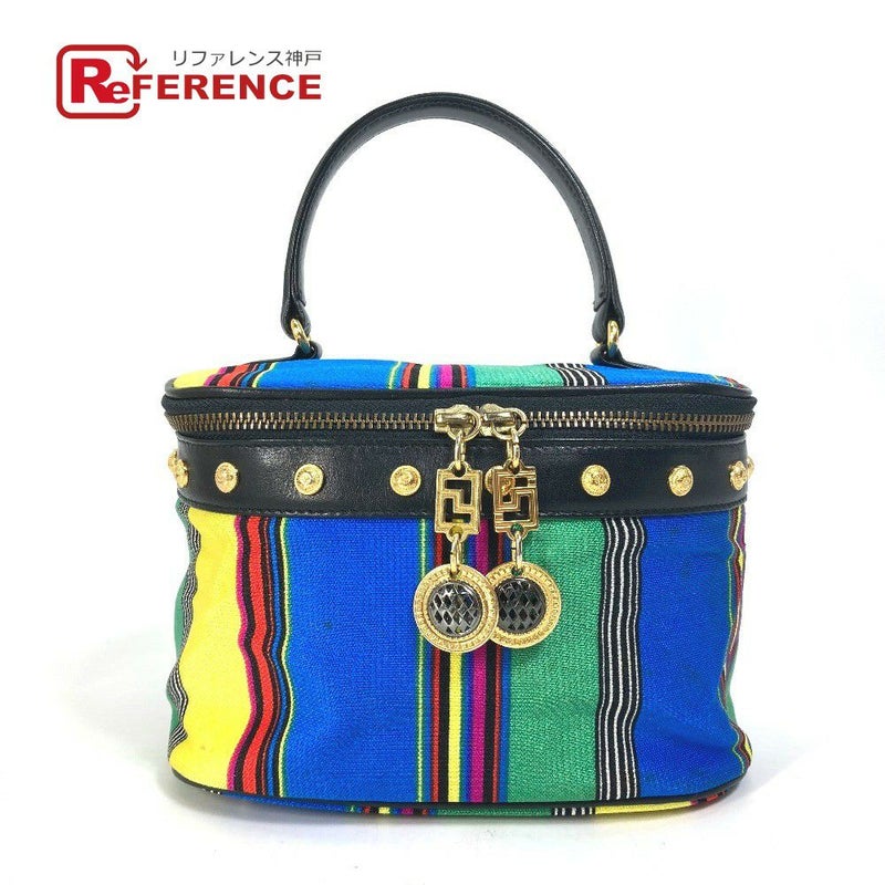 ヴェルサーチ カラフル VERSACE ヴェルサーチ ヴィンテージ ストライプ ミラー付き ハンドバッグ ポーチ バニティバッグ キャンバス/レザー レディース マルチカラー 【中古】