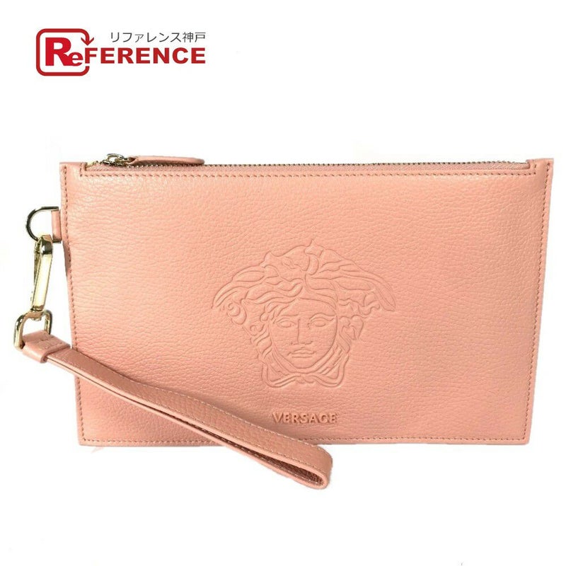 【新品同様】ヴェルサーチ VERSACE ヴェルサーチ カバン ポーチ メデューサ ストラップ付 クラッチバッグ レザー レディース ピンク 新品同様 【中古】