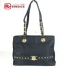 ヴェルサーチ 黒色 VERSACE ヴェルサーチ ヴィンテージ ロゴ サンバースト カバン トートバッグ チェーン 肩掛け ショルダーバッグ ナイロン/レザー ユニセックス ブラック 【中古】
