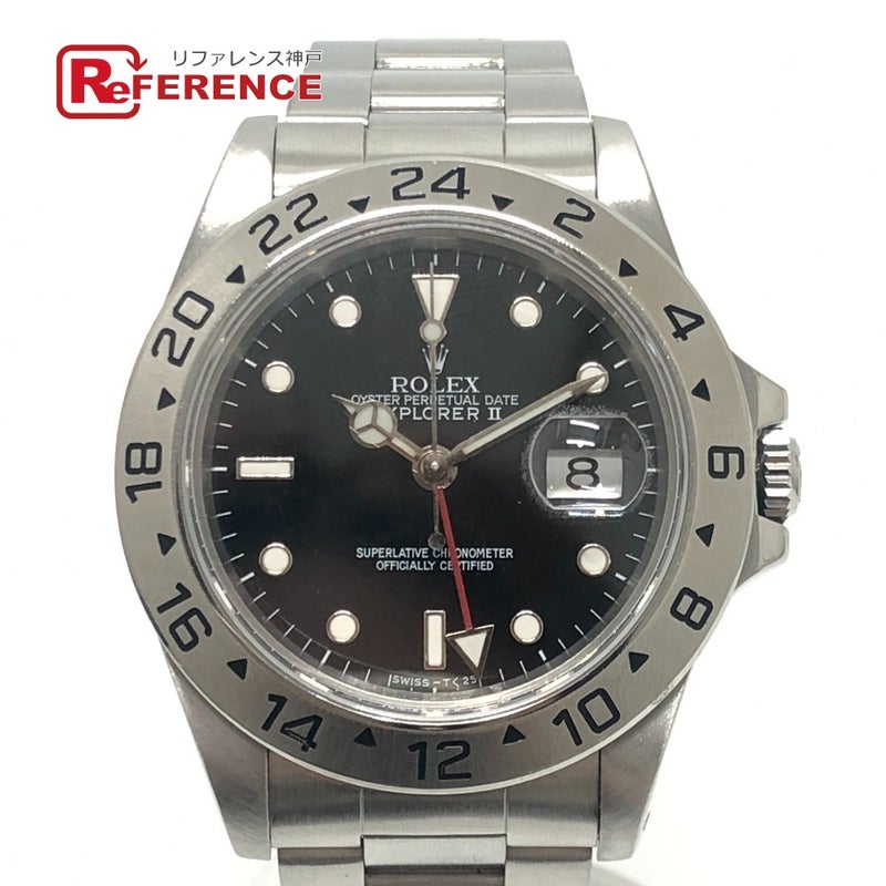 【新品同様】ロレックス 銀色 ROLEX ロレックス 16570 エクスプローラー2 X番 自動巻き デイト ウォッチ ブラックダイヤル 腕時計 SS メンズ シルバー 新品同様 【中古】