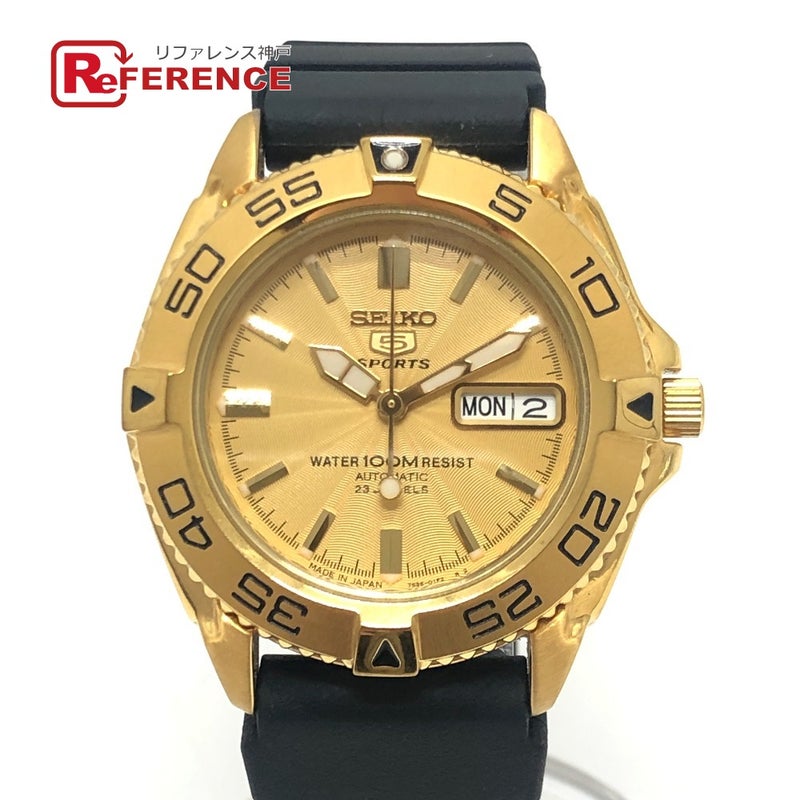 【美品】セイコー 金色 SEIKO セイコー 7S36-00Y0 ファイブ スポーツ 裏スケ 自動巻き デイデイト ウォッチ ラバーベルト 腕時計 SS メンズ ゴールド 【中古】