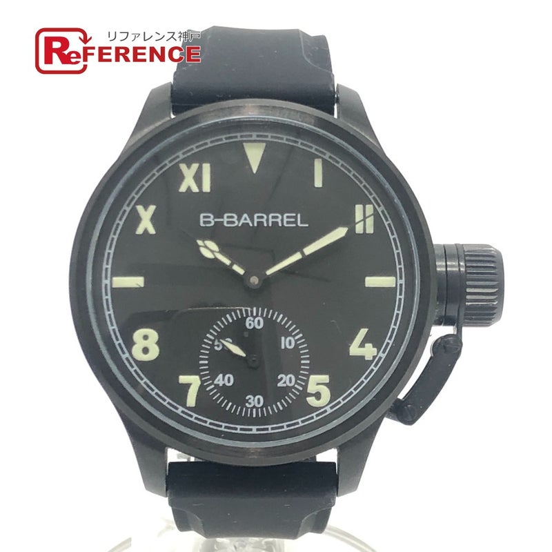 【中古良品】ビーバレル 黒色 B-BARREL ビーバレル BB-0046 スモールセコンド 手巻き ウォッチ ラバーベルト 腕時計 SS メンズ ブラック 【中古】