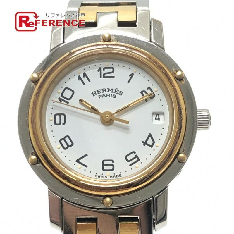エルメス 銀色 HERMES エルメス CL3.240 クリッパー クォーツ デイト ウォッチ ラウンドフェイス コンビ 腕時計 SS レディース シルバー 【中古】