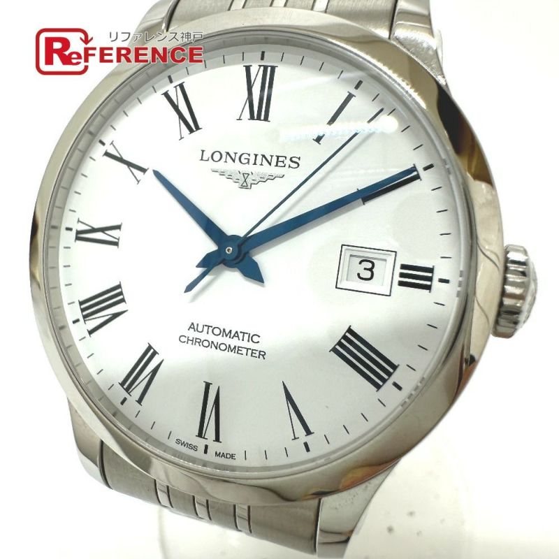 【美品】ロンジン 銀色 LONGINES ロンジン L2.820.4.11.6 ウォッチ レコード クロノメーター 自動巻き デイト 腕時計 SS メンズ シルバー 【中古】