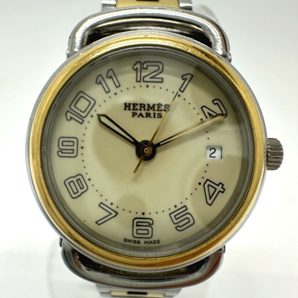 他の画像を見る エルメス 金色 HERMES エルメス PU2.220 プルマン クォーツ デイト 腕時計 SS/GP レディース シルバー/ゴールド 【中古】 中古ABランク 通常価格 ¥ 75,900 特別オンライン価格 ¥ 74,400 税込 カートに入れる お気に入りに登録する